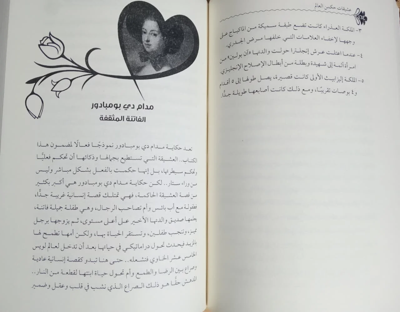 الكتاب يتناول *قصص العشيقات* اللواتي تمكنَّ من *التأثير* في القرارات السياسية، والمشاركة في *صناعة التاريخ* بطرق غير تقليدية. يسلط الضوء على حياة نساء من مختلف العصور والثقافات، وكيف استغللن *نفوذهن الشخصي* لتحقيق مصالح سياسية أو اجتماعية، أو حتى التأثير في *مسار الحروب* والسياسات الدولية.
