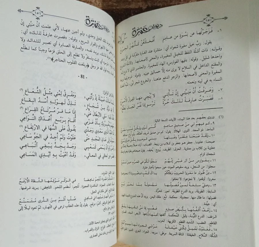 وهو أسلوب جديد من أساليب التحقيق باعتماد نظرة مقارنة بين طبعات عدة لاختيار الأقرب إلى الصحة.. ومع اشتمال الكتاب على دراسة نقدية شاملة لإسلوبه الفني في النظم والأداء الشعري.. إنه كتاب يلقن المثل العليا في الفروسية واللغة العربية شكلاً ومضموناً لدى علم كبير من أعلامها